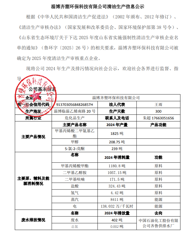 淄博齊塑環(huán)??萍加邢薰厩鍧嵣a(chǎn)信息公示